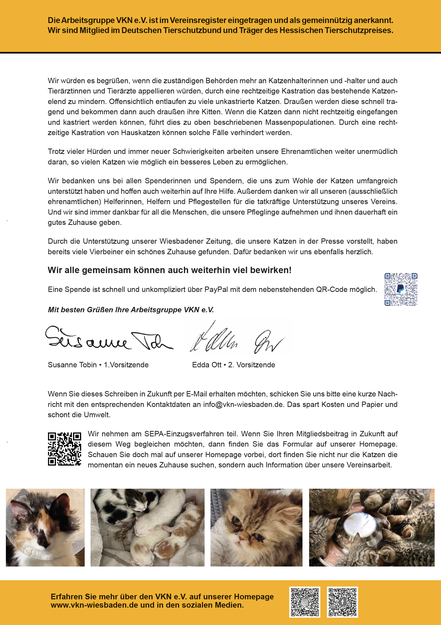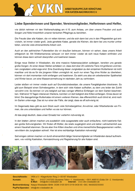 unterernährt und krank, vermehren sie sich unkontrolliert weiter, obwohl es in Wiesbaden eine Katzenschutzverordnung mit Kastrationspflicht gibt.