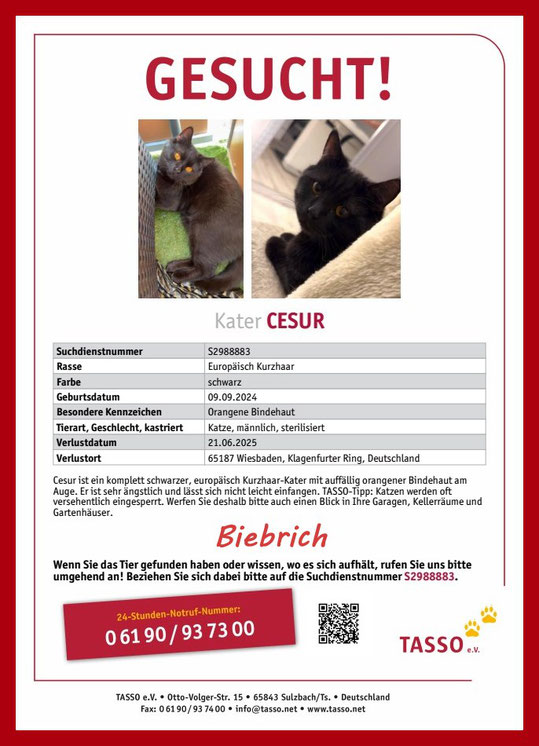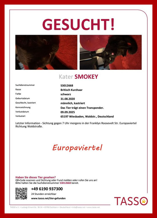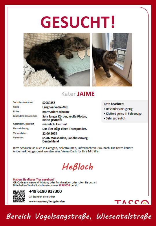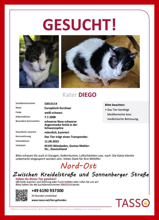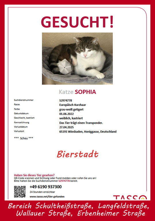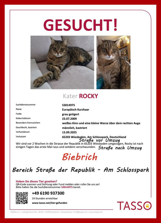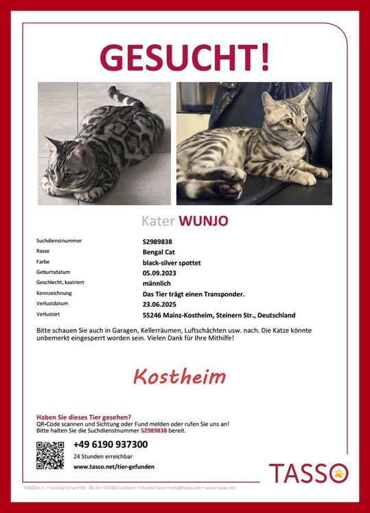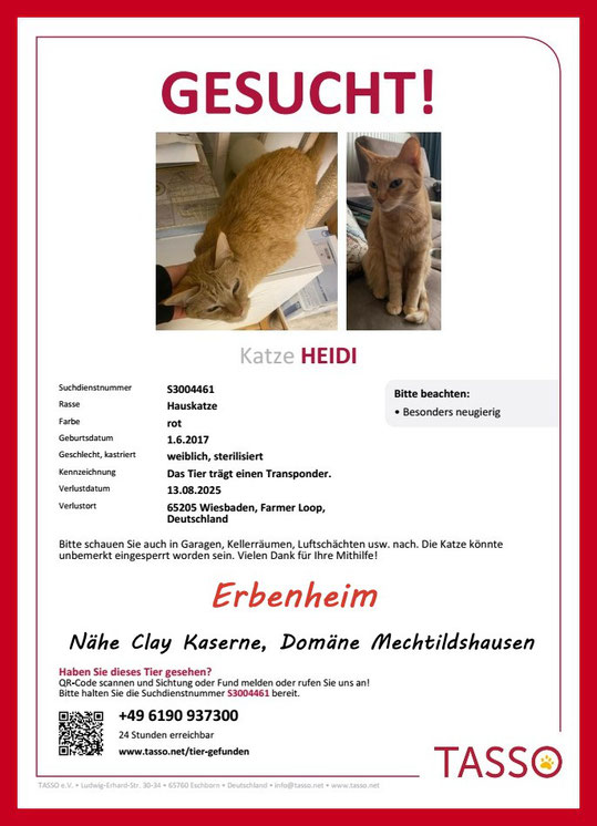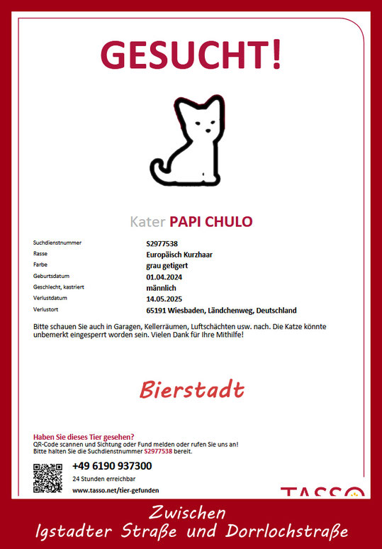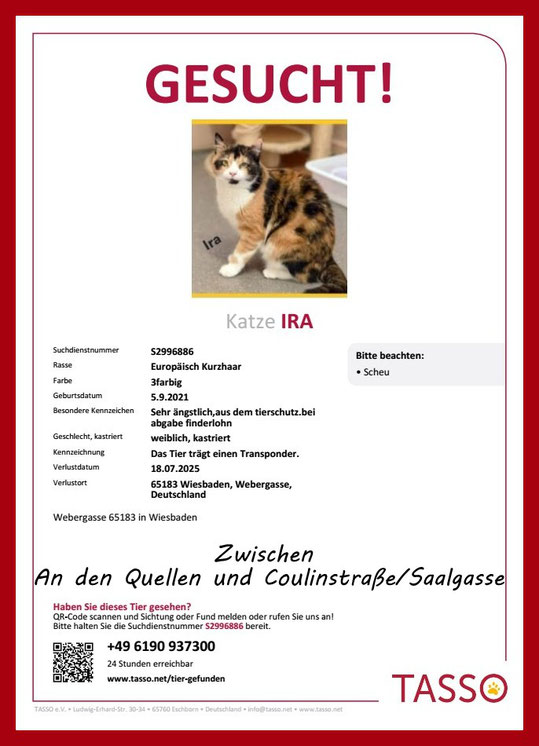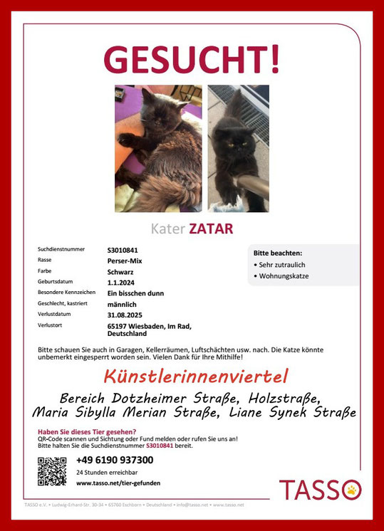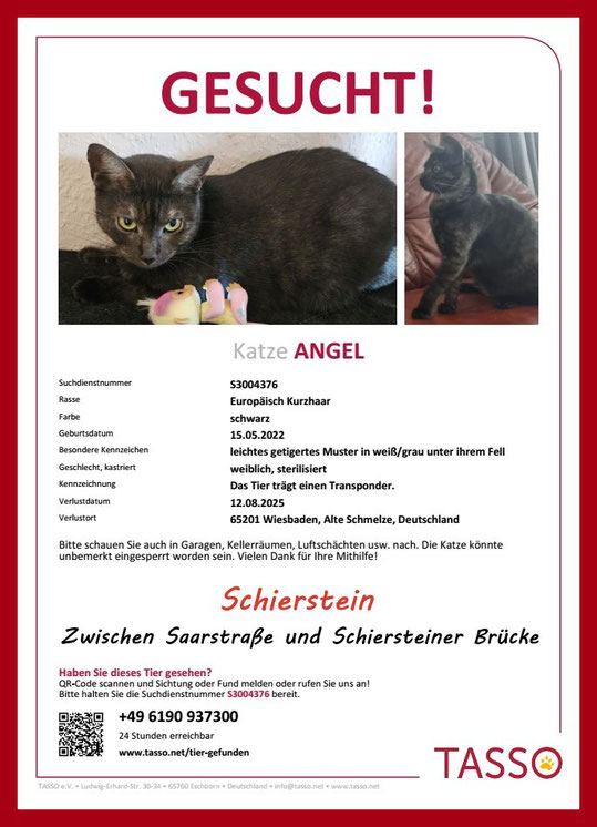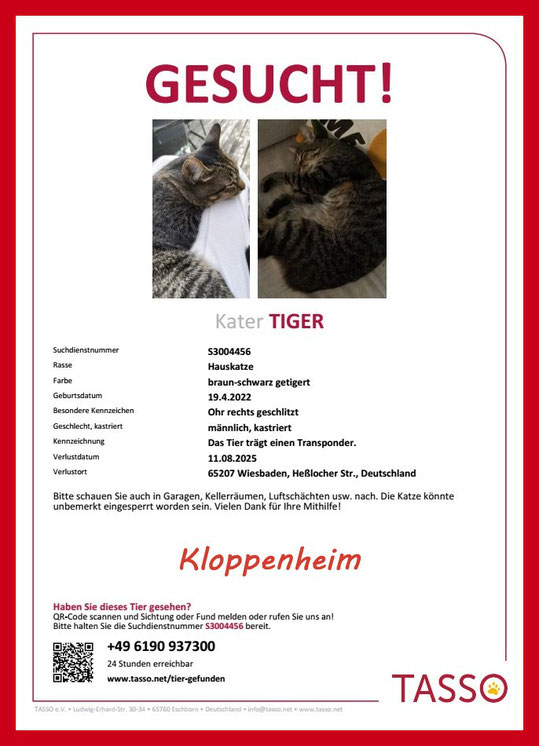 Wenn Sie Ihre Katze vermissen, können Sie uns gerne kontaktieren. Wir veröffentlichen Ihre Suchmeldung auf unserer Website. Wenn Sie Fotos von Ihrer Katze haben, fügen Sie diese bitte der E-Mail bei.